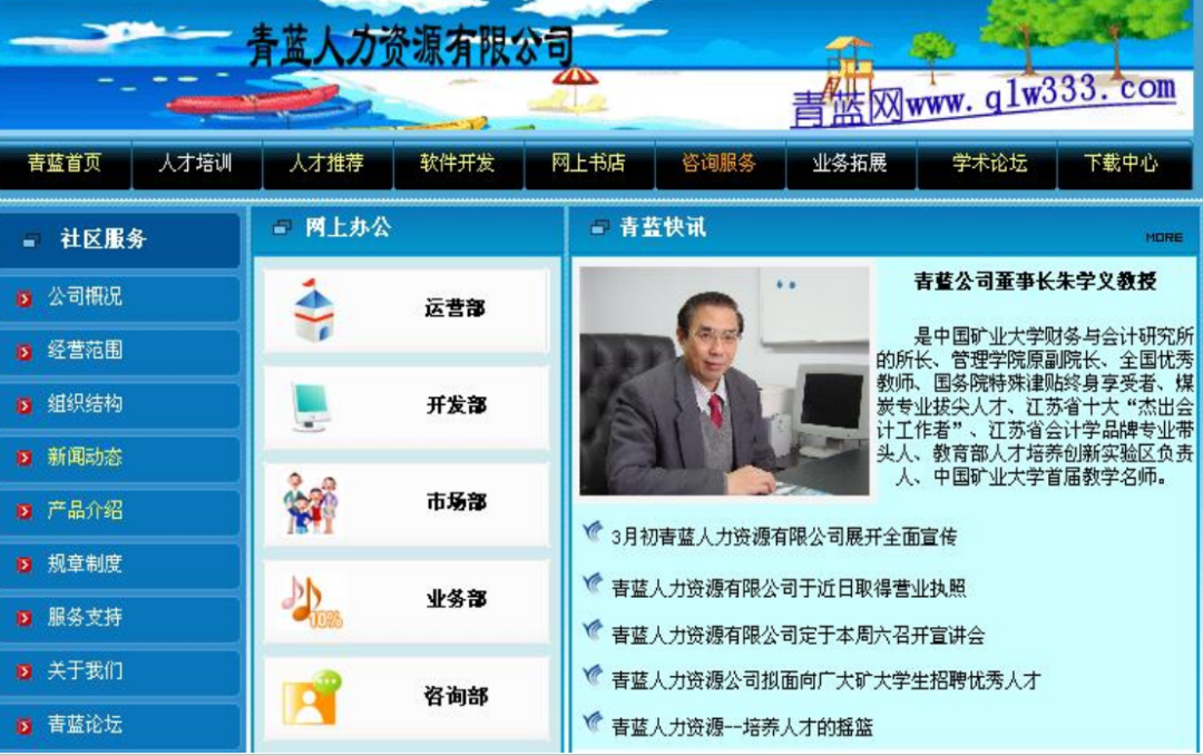 首先,朱学义教授向我们介绍了自己在过去实践过的案例以及获得的荣誉。朱教授一手创办了“青蓝人才网”,而“青蓝网”为大学生提供了一个锻炼自己和发挥能力的平台,使大学生的能力都能得到认可和证实,青蓝公司的宗旨深深体现了青蓝公司对大学生立业创业的肯定与支持。