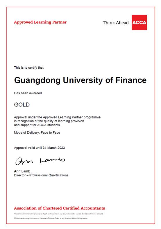 ACCA合作办学机构项目(ALP)是ACCA官方对全球高质量ACCA办学机构的正式认可,我校是广东省第三家获得黄金级认证的高校。