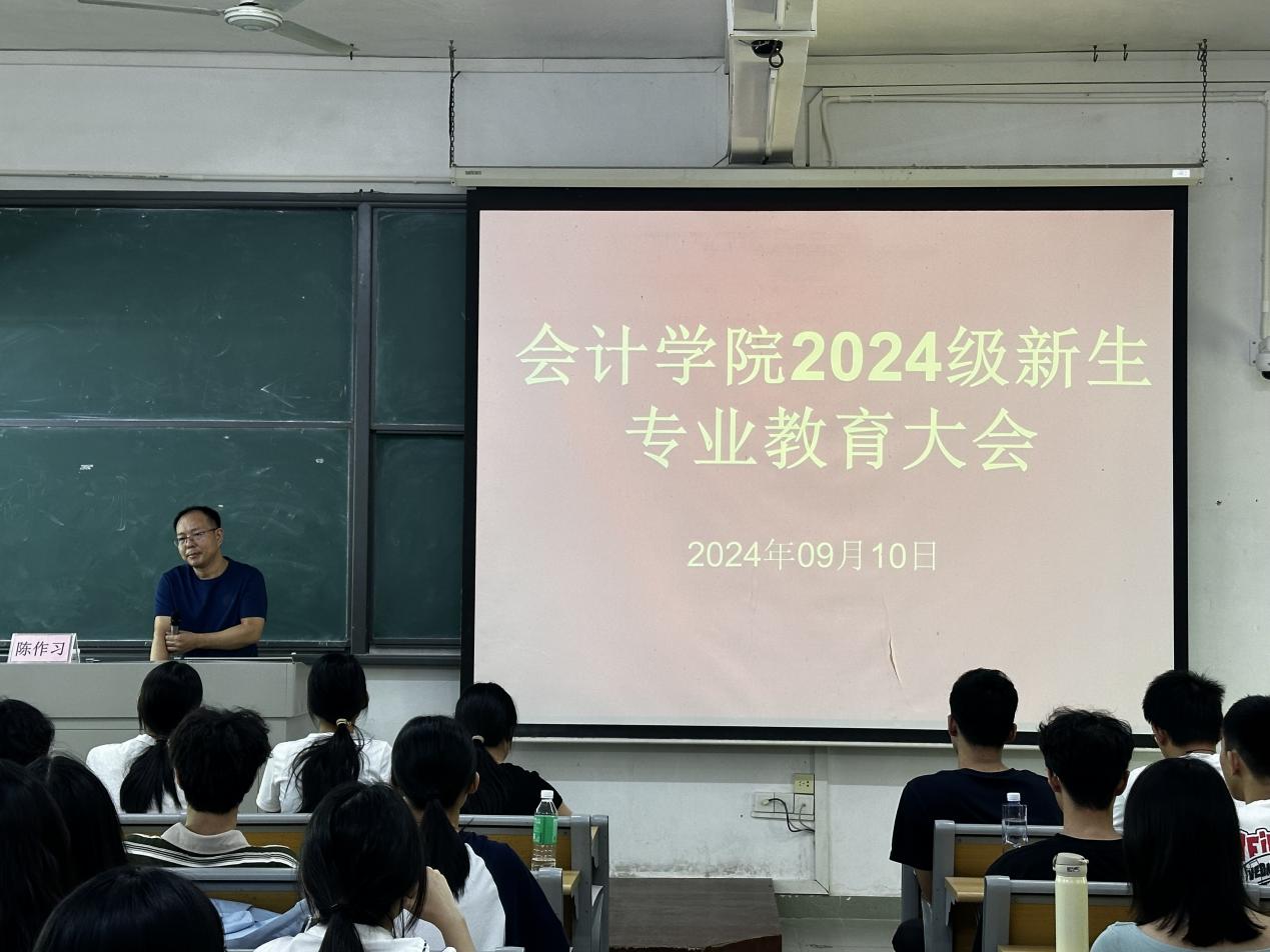 在会计学专业见面会上,罗书章主任围绕“目标调整,自我赋能和专业学习”展开分享,就为何读大学,如何读大学及专业与就业三大模块对学生进行指导与启蒙。罗主任还为新生提供了几项学习方法作为参考,引用“二八定律”告知学生高中与大学学习的不同,建议新生使用不同于高中精细化学习的广泛化围捕学习法,建议同学们打破“信息茧房”,多读经典,关注时事新闻,不沉迷于短视频提供的多巴胺陷阱,而是转向于自我提升时分泌的内啡肽。罗主任结合以往案例,向同学们提出宝贵意见,使同学们收益匪浅。最后,罗主任认真回答了同学们关于大学勤工俭学、实习机会、双学位及证书含金量等问题,并鼓励同学们开拓思维、大胆创新。