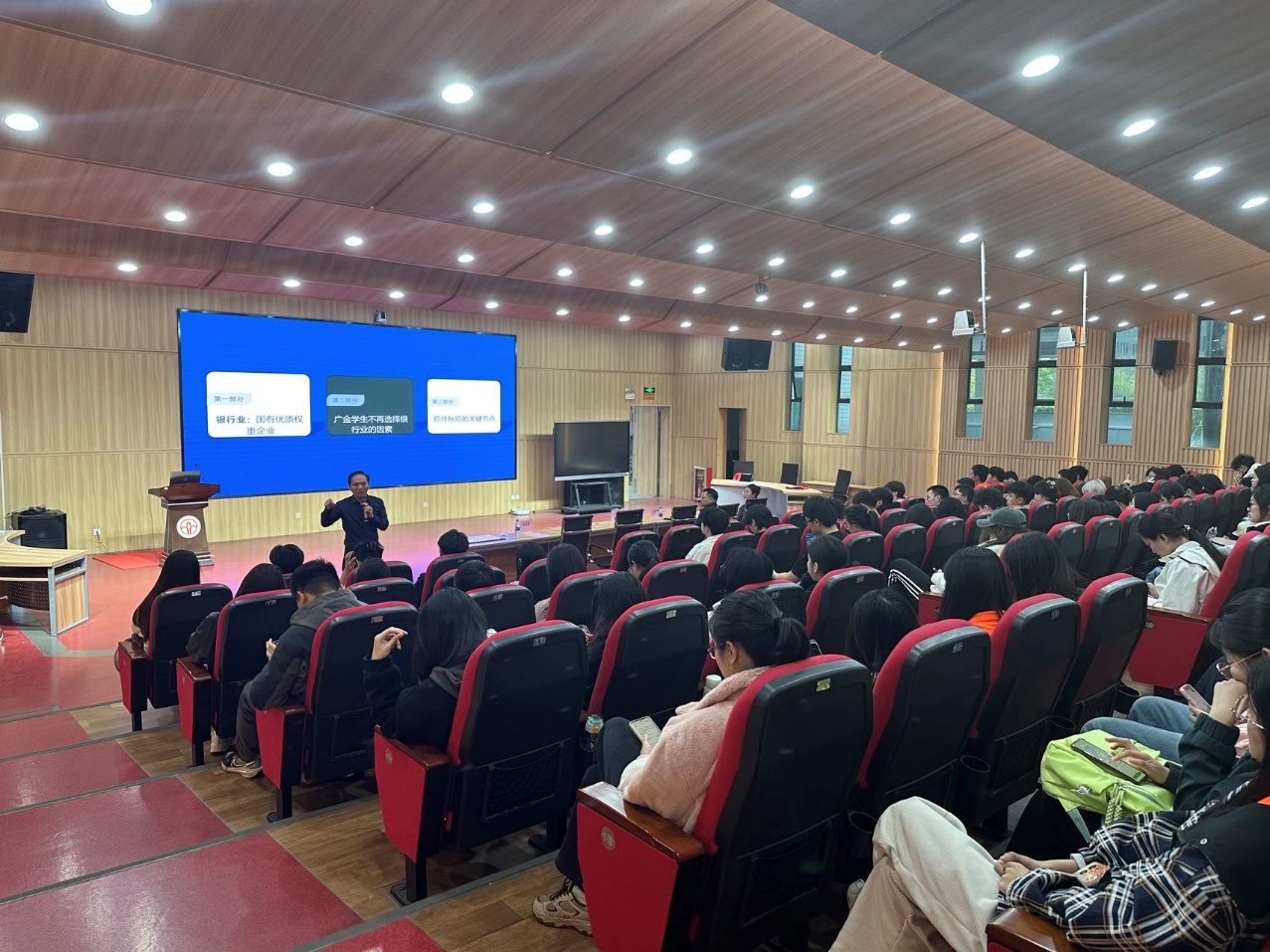 2025年2月28日,广州为全面提升学生金融文化素养、深化职业规划能力,pg游戏携手民生银行南沙分行于北教学楼阶梯教室103举办“金融文化素养宣讲暨银行业就业形势分析会”