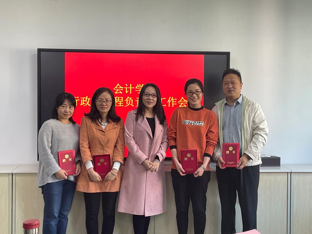2020年12月3日下午,学院行政及课程负责人工作会议在学院会议室召开。文芳院长、马鹏副院长、舒利敏副院长、赵剑锋副院长、各系(教研室)主任及课程负责人出席了会议,马鹏副院长主持会议。学院选拔的第一批课程负责人罗书章教授、许剑娜老师、王铁林教授首先分别就《会计学原理》、《财务会计》和《高级财务会计》等课程建设进展情况进行汇报交流。文芳院长感谢各位课程负责人为课程建设付出的努力,并亲自为第二批课程负责人颁发了聘书和课程立项证书,向第二批课程负责人表示祝贺,希望大家一起努力,共同把课程建设好,为学院人才培养质量提升做出贡献。随后,受聘的第二批课程负责人赵剑锋博士、钟纯博士、黄华梅老师、杨中环老师分别汇报了《管理会计》、《财务报表分析》、《财务管理》、《成本会计》等课程的建设思路和工作计划,得到了与会老师的认可和肯定。会议还就学院“十四五”规划编制、2021级本科人才培养方案修订、一流专业和课程建设、本科教学质量年报编制等事项进行了研讨。