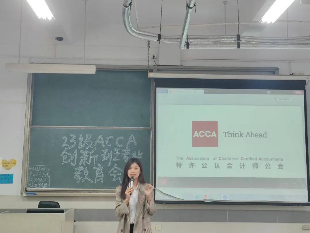 活动中,赖志成书记和秦格副院长为2020级,2021级和2022级获得ACCA优秀学员荣誉称号的6位同学颁发证书。获得荣誉的同学依次分享了自己学习ACCA的历程和经验,让23级的新同学们获益匪浅。