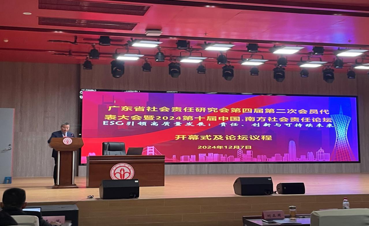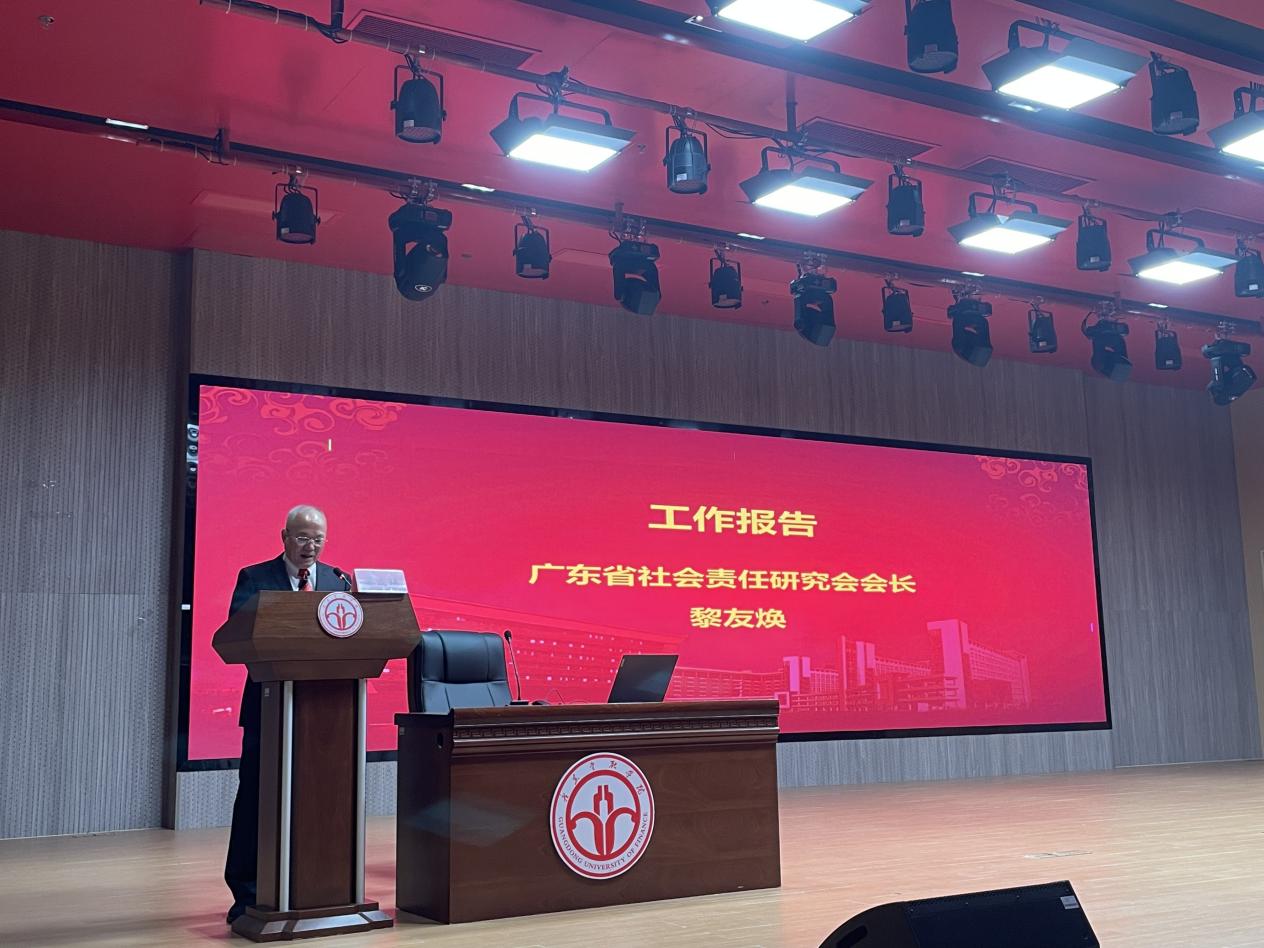 随后,广东省社会责任研究会会长黎友焕作年度工作报告,他回顾了广东省社会责任研究会过去一年在科研、社会服务、社会联系等方面取得的成绩,并对明年的重点工作进行了展望。黎友焕会长强调未来将重点从两个方面推动研究会工作:一是深化理论研究,回应时代需求;二是强化社会联系,根植广东实践。