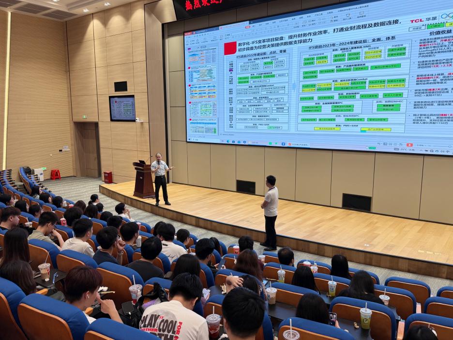 参观展厅后,此次参访学习进入座谈交流环节。广州华星光电公共事务部高级经理袁稹首先介绍了TCL集团和华星光电的企业文化、全球布局战略及其运营情况。随后,华星光电财务部负责人徐伟重点介绍了广州华星光电财务数字化转型的实践经验。他强调了数字化转型对企业运营效率提升的重要性,以及数字化转型对财务人员在跨部门协作与沟通能力方面的要求。具体而言,数字化转型不仅涉及到技术的更新,更涉及到业务流程的优化和员工业务能力的迭代与提升。他指出,财务人员需要具备跨领域的知识和技能,以适应数字化时代的需求。